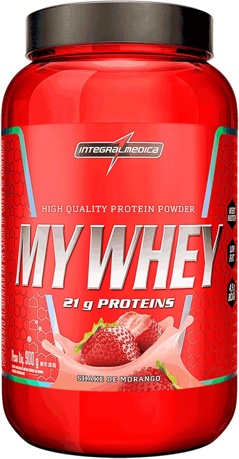 Em até 1x de R$136,88 sem jurosEm até 12x de R$12,94 com juros Integralmedica My Whey Proteína em Pó Sabor Morango – 21g de Proteína por Porção – Alta Concentração de BCAAs – Pote 900g